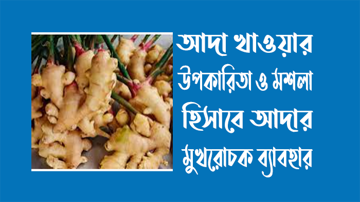 আদা অত্যান্ত প্রয়োজনীয় মসলা। আদা ছাড়া মাছ মাংস কোনকিছুই রান্না করা যায় না। মাংসে একটু বেশি আদা ব্যবহার করলে খুব সুস্বাদু হয়। আদা আমাদের বিভিন্ন রোগে সহায়ক ওষুধ হিসেবে ব্যবহৃত হয়।